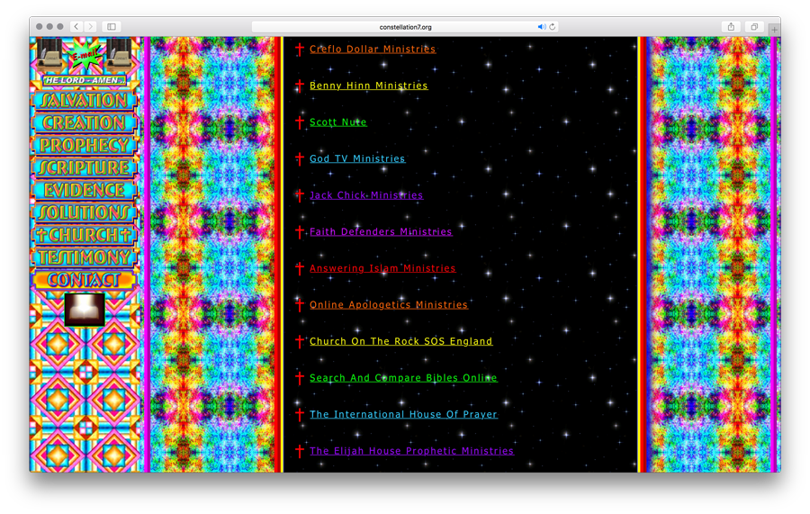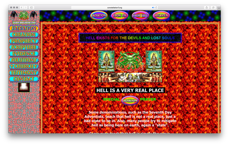 Enjoy your short time on Earth before burning in eternal hellfire by exploring the web haven that is Constellation 7. Be sure to have your volume on for this terrifying multimedia masterpiece. Forget "science" and "reason" as you learn the truth about God and this planet's creation—which [spoiler alert] happened more recently than you may think!